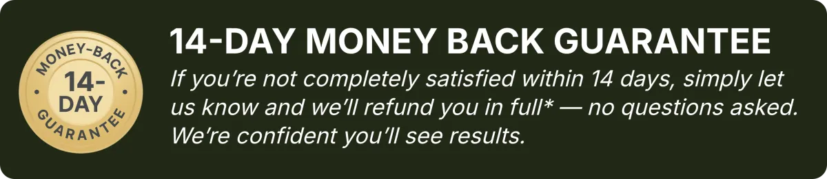 Yes. You have 14 days (336 hours) from the moment you enroll to request a full refund if the program isn't right for you. To qualify, you must have watched less than 20% of the course content AND you must request the refund within 336 hours. As long as you meet both conditions, refund requested within 14 days AND less than 20% of content viewed, you'll receive a 100% money-back refund, no questions asked.